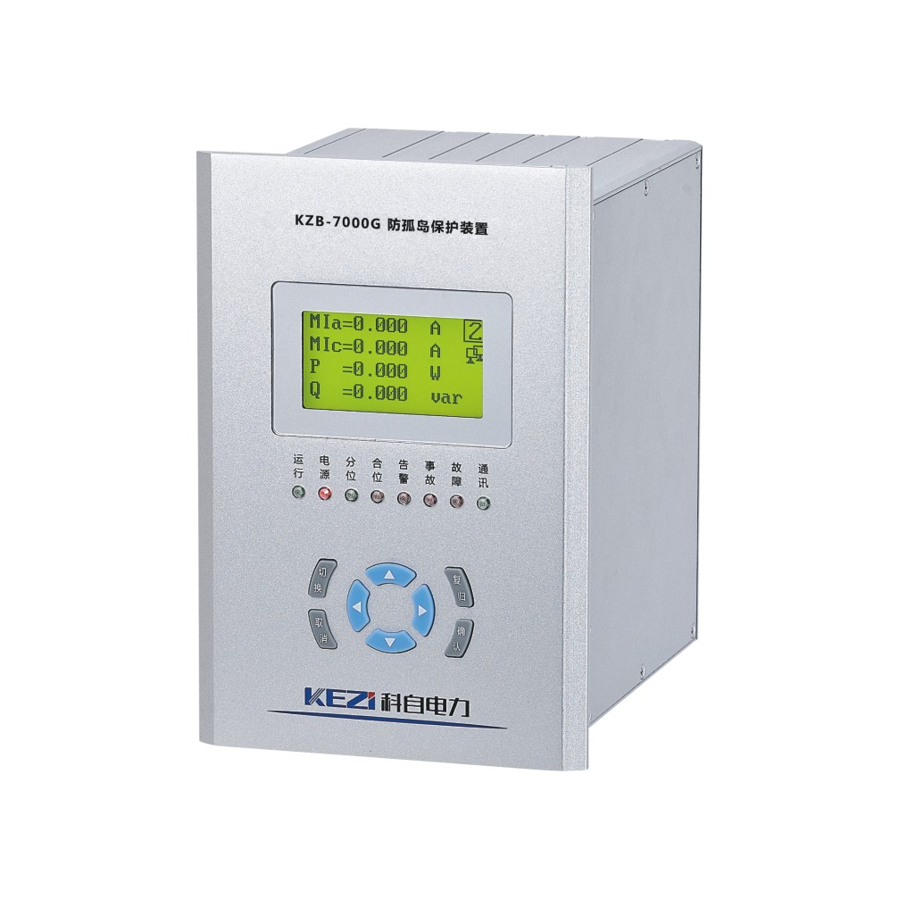 KZB-7000G防孤島保護裝置主要適用于35KV、10KV及以電光伏電站、風電站的小電源并網供電系統,在發生孤島現象時,作為后備保護可以快速切出分布式孤島電源。該保護裝置具有低頻、高頻、頻率突變、低壓、高壓、逆功率、線路失壓跳閘、有壓合閘、諧波超量、聯跳等保護功能。主要功能