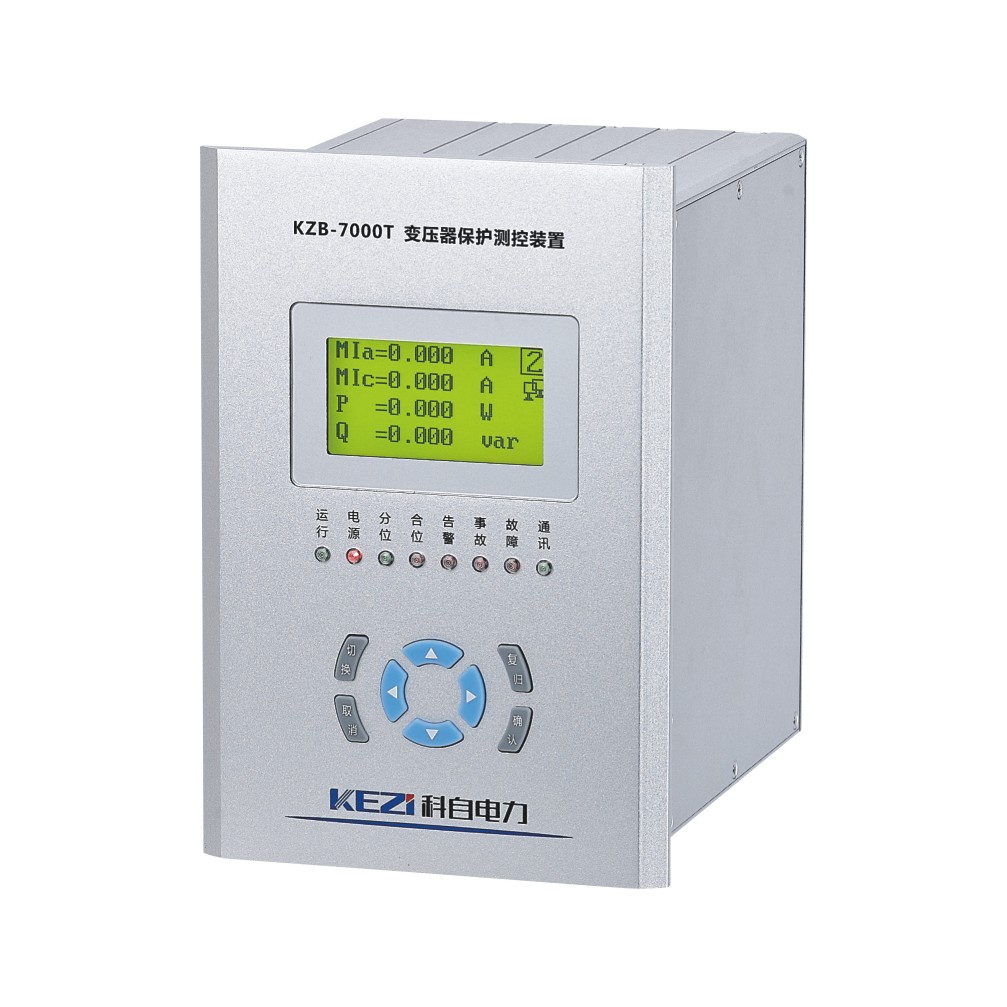 KZB-7000系列保護測控裝置由發電機保護、主變保護、線路保護,變壓器保護,電容器保護,電動機保護、電抗器保護、備自投、PT保護等組成,可用于110kV及以下電壓等級的電網和發電廠廠用電系統。通過采用高性能32位CPU將保護、測控、通信功能集成于一體,適合與變電站綜合自動系統或電廠電氣自動化系統配套。裝置可以組屏集中安裝,也可直接安裝于開關柜上進行分散式控制。主要功能